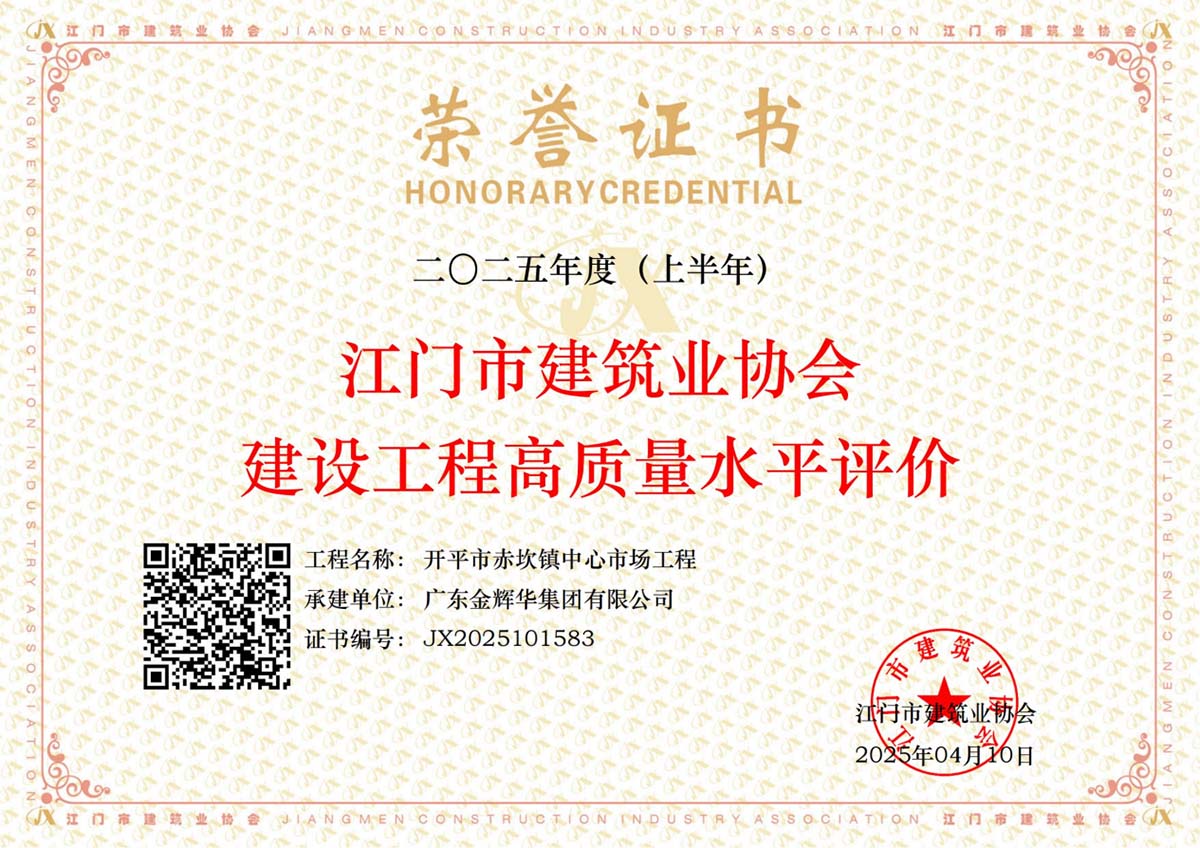 獲江門市建筑業(yè)協(xié)會(huì)建筑工程高質(zhì)量水平評(píng)價(jià)2項(xiàng)