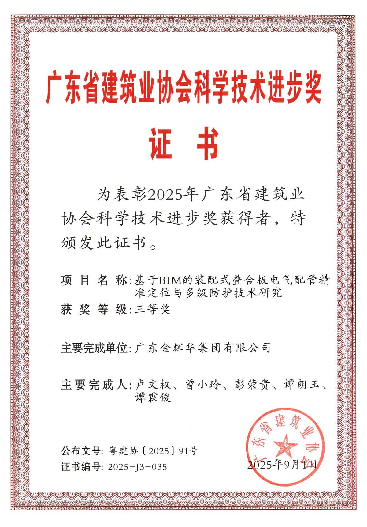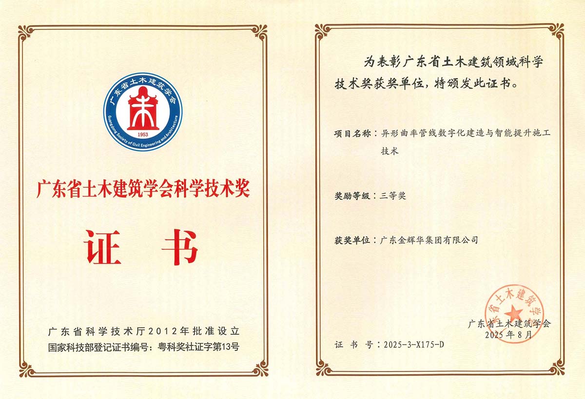 此次多項(xiàng)成果榮獲行業(yè)重要獎(jiǎng)項(xiàng),是對(duì)我們過去科技創(chuàng)新工作的肯定,更是激勵(lì)我們不斷前行的動(dòng)力。未來(lái),金輝華集團(tuán)將繼續(xù)秉承科技引領(lǐng)、創(chuàng)新驅(qū)動(dòng)的理念,緊盯行業(yè)前沿技術(shù),不斷加強(qiáng)創(chuàng)新能力。我們將致力于打造更多具有核心競(jìng)爭(zhēng)力的科技成果,為建筑行業(yè)的發(fā)展注入更多的金輝華智慧。